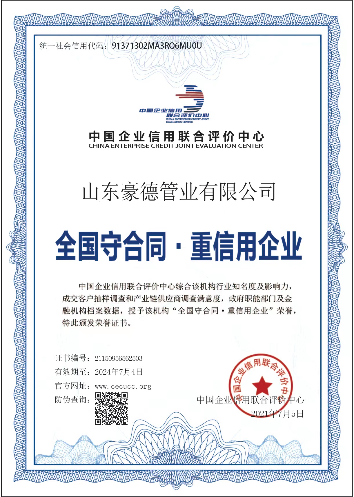 山東豪德管業有限公司豪德——專業pe管材生產廠家公司是聚乙烯PE管材管件生產建設基地,年產各類PE管材近億噸,綜合性能好。